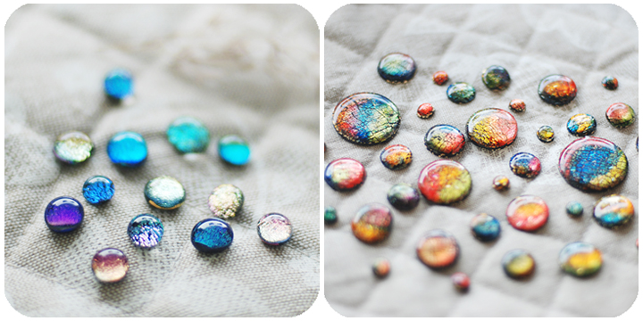 Декорируем бусинку – белый и цвет «звездной пыли» превращаем в маленькие шарики, в полоски, и закрепляем их на созданной вами бусине в порядке художественного беспорядка.
